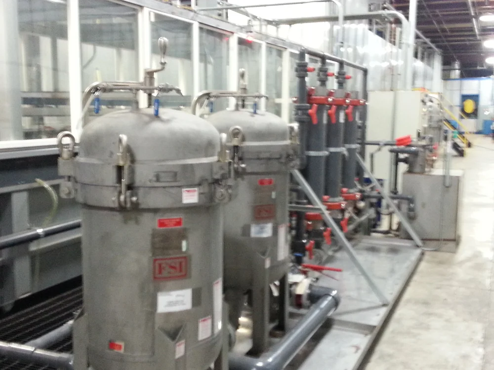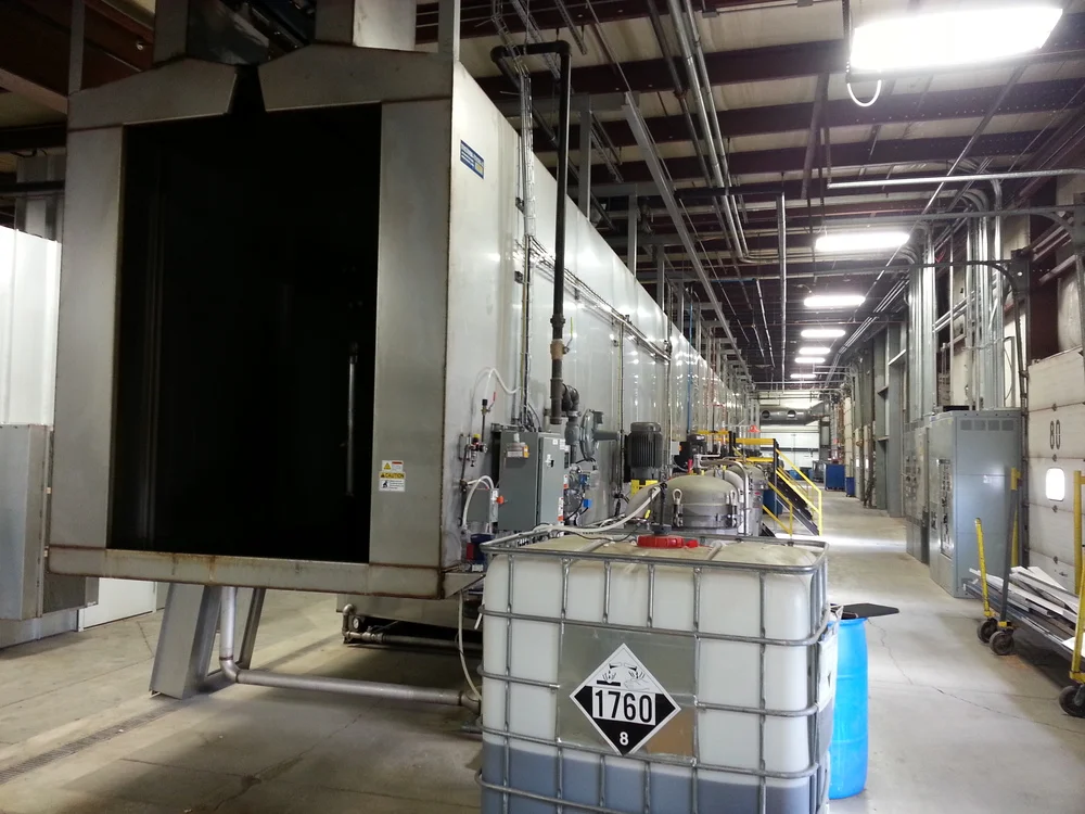 Autophoretic ("A-Coat" or "Aquence") base coat and powder top coat line for steel tow hitch assemblies.